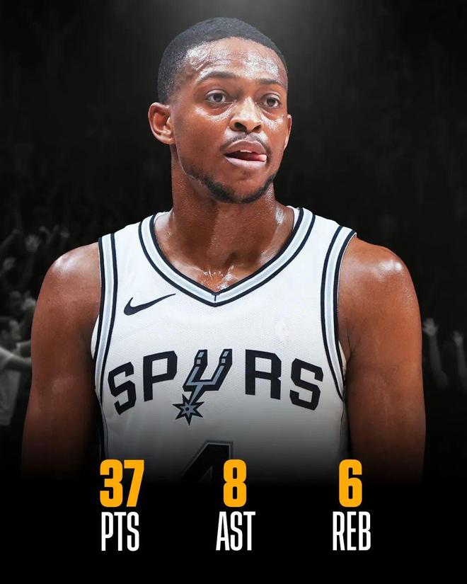 这场比赛,福克斯打出了本赛季复出以来的最强一战:全场出战33分钟,投篮25中11,三分8中3,罚球12中12,拿下37分6篮板8助攻3抢断。