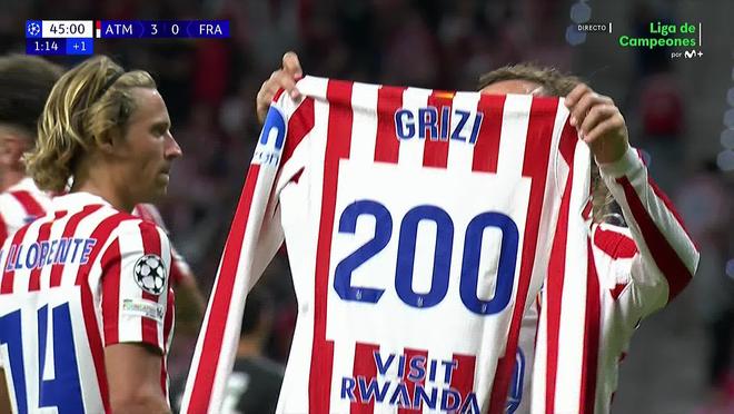 上半场补时阶段,格列兹曼破门,打入个人马竞生涯第200球。在进球后,格列兹曼也拿出提前准备好的马竞生涯200球纪念球衣进行庆祝。