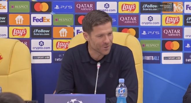 雷速体育10月1日讯 欧冠联赛阶段第2轮,皇马客场5-0大胜凯拉特。赛后,皇马主帅哈维·阿隆索出席了新闻发布会。