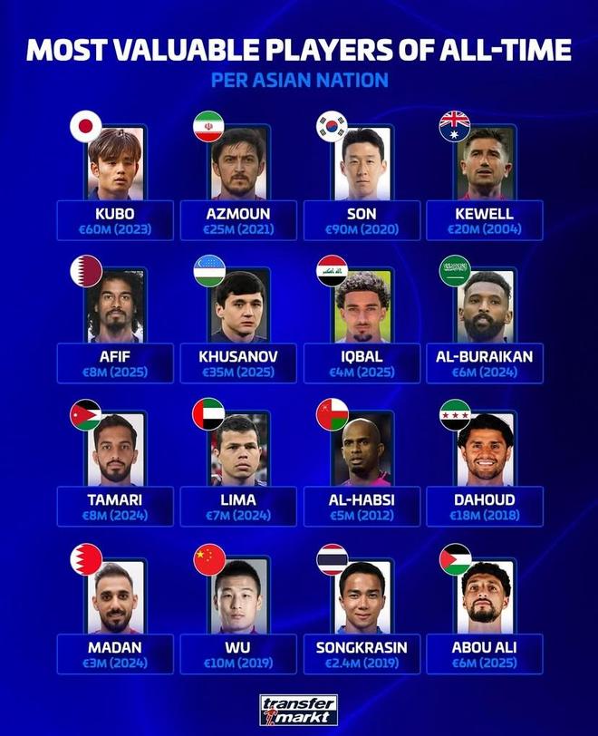 德转列亚洲各国/地区历史身价最高球员:孙兴慜第1,武磊上榜