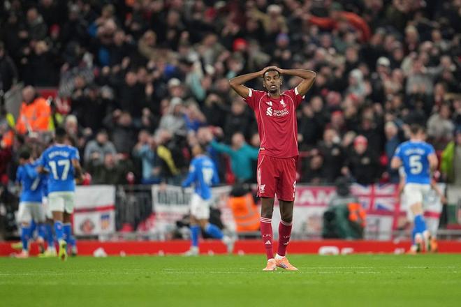 本轮面对来势汹汹的升班马桑德兰,利物浦主帅斯洛特延续了上轮2-0击败西汉姆联的首发阵容。然而在主场,红军再次演砸了。上半场久攻不下后下半场心态愈发焦急,队长范戴克失误被断球,桑德兰依靠世界波取得领先。