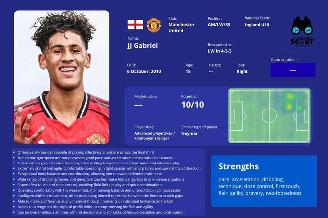 加布里埃尔有可能成为曼联历史上最年轻的英超出场球员,目前该纪录由安吉尔·戈麦斯(16岁263天)保持,肖拉·肖雷蒂尔(17岁19天)以及奇多·奥比(17岁79天)排在第二和第三名。