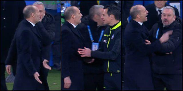 意超杯半决赛,AC米兰0比2那不勒斯,场上对抗激烈,场外不遑多让。赛事尾声,两队替补席火药味十足,第89分钟,阿莱格里疑似称呼孔蒂助教奥里亚利为“混蛋”。终场哨响,囧叔和孔蒂拒绝握手致意。 对囧叔举动,那不勒斯以严正声明进行强烈谴责:“他在场边数十人与转播镜头的见证下,反复使用侮辱性言辞恶劣攻击奥里亚利。鉴于赛事转播动用了33台摄像机,不存在无法确认事件经过的可能。我们希望他彻底失控的行为不会逃脱追责。”