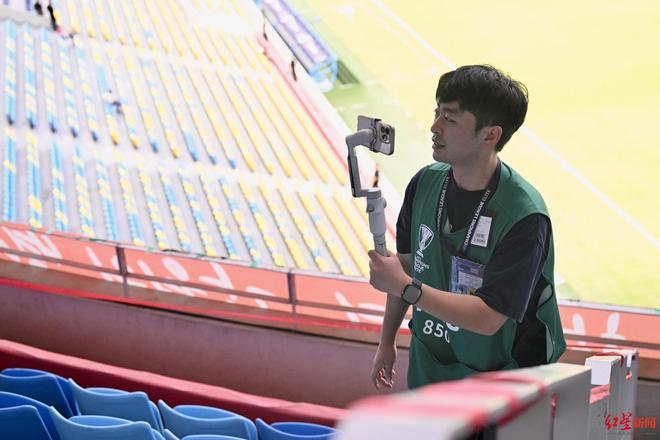 ▲韩国记者赵诚龙正在拍摄球迷
